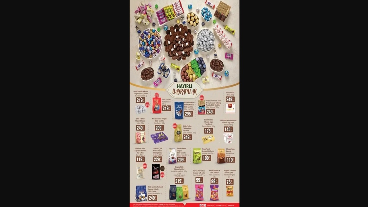 Ramazan Bayramı öncesi BİM, 17-20 Mart tarihleri arasında satışa sunacağı aktüel ürünlerle dikkat çekiyor. Çikolata, şekerleme ve tatlı çeşitleriyle dolu kampanya, hem bütçeye hitap ediyor hem de bayram sofralarına görsel şölen katıyor.